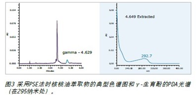 图2和图3分别为核桃油萃取物的典型色谱图和SFE和PSE的PDA光谱。