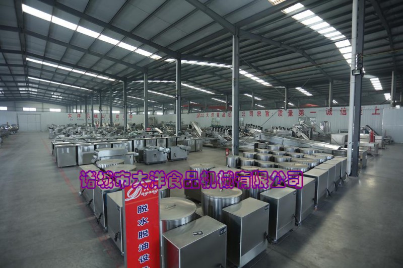 5 .油炸机:山东大洋专业生产各种型号油炸机、油炸设备,有电加热和煤加热两种,同时又分自动出料和手动出料、自动搅拌等多种品种6.脱油机:大洋牌油炸食品脱油机装置了防震系统,脱油过程中设备不会震动,利用离心原理,设有电磁刹车,数字自动控制,不锈钢制做,是目前国内的薯片薯条脱油设备。适用于所有油炸食品的脱油。7.调味机:大洋牌薯片薯条调味机分为八角式、圆盘式和滚筒式三种:此设备操作方便,产量高,拌料均匀,自动出料,不锈钢制做,可以对任何食品进行调味、拌料。是目前国内的食品调味设备。8.包装机:大洋牌真空充氮包装机整机均为不锈钢制作,耐腐蚀,不生锈,经久耐用,性能稳定,操作简单,维护方便。同时可根据用户特殊要求快速订制各种非标机型的真空机。