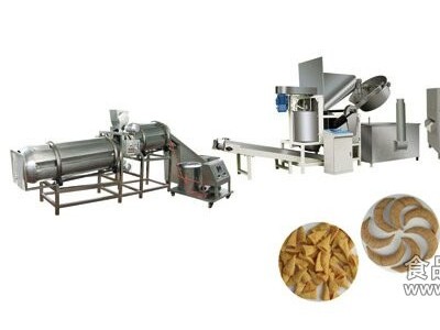 油炸食品工艺流程:原料配制→拌粉→膨化机→整形切断→自动油炸→调味→(包装)