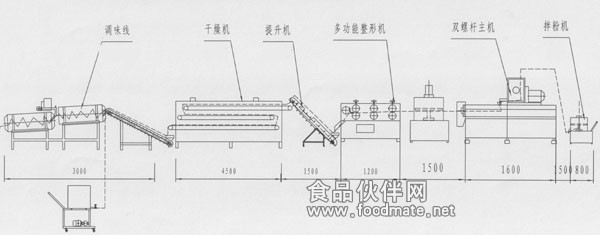 三、膨化夹心食品生产设备工艺组成: