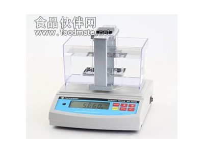 电子固体食品比重计DA-300M ------精准、操作简便、功能齐全、稳定耐用DA-300M可以测量所有固体的密度;具有多种测量模式,针对多孔性产品,可以采用煮沸饱和法、浸渍饱和法、真空饱和法、封蜡法…等多种封孔测量方法;在称重30g时,具有称重精度达千分之一的模式;非常适合小型产品密度检测、高密度产品密度检测、吸水性产品密度检测、品质与成本管理控制、新材料配方研究与开发…等领域的应用。DA-300M装配无需掀盖一体成形铝合金测量配件,透明水槽,使安装与操作更简便、更快速、更人性化。本仪器具有密度上下限设定功能,能判定待测物合格与否,并提示报警。同时还具有橡胶DIN磨耗量与膨胀率测量功能;各种粉末真密度与表观密度测量功能;含油轴承含油率测量功能…等多方面的测量功能。应用领域:各种金属、粉末冶金、精密陶瓷、耐火材料、磁性材料、合金材料、机械零部件、金属回收、各种橡胶、塑胶、电线电缆、高分子材料、水泥产业、土木工程、建筑工程、煤炭能源、矿物与岩石、珠宝产业…等领域。DA-300M符合众多检测标准:例如:ASTM D792、 ASTM D297、 ASTM D618、 ASTM D891、 ASTM D5004、 GB/T1033、 GB/T533、 GB/T 9966、 GB/T1423、 GB/T1933、 GB/T4196、 GB/T2997、 GB/T2998、 GB/T2999、 GB/T208、 GB/T6692、 GB/T 6155、 GB/T5163、 GB/T5164、 GB/T5165、 GB/T6155、 GB/T3850、 GB/T23561、GB/T5071、 CNS 5341、DIN53479、 DIN 53420、 HG4-1468、 JIS K6268、 ISO 2781、ISO 1183、ISO2738………等。u 技术参数:1. 密度解析:0.001 g/cm