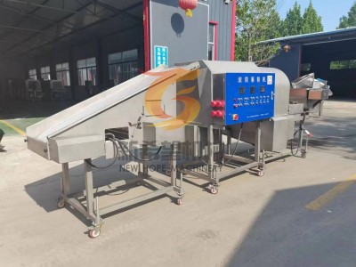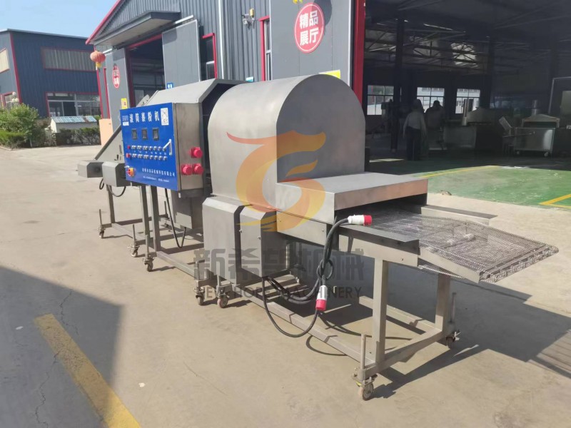 他的生产工艺有两种,一种是直接油炸,一种是裹粉后再油炸,今天带给大家的是滚筒式裹粉机,可以实现一天10吨左右的生产任务。